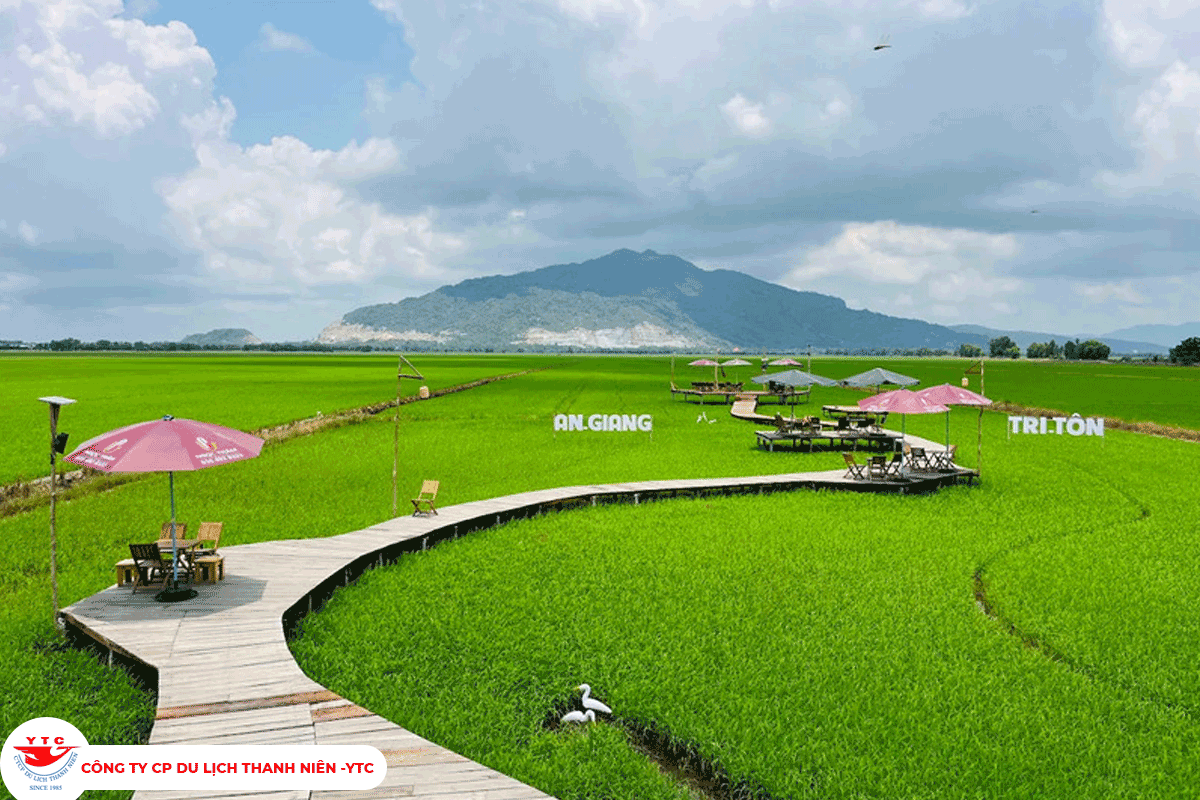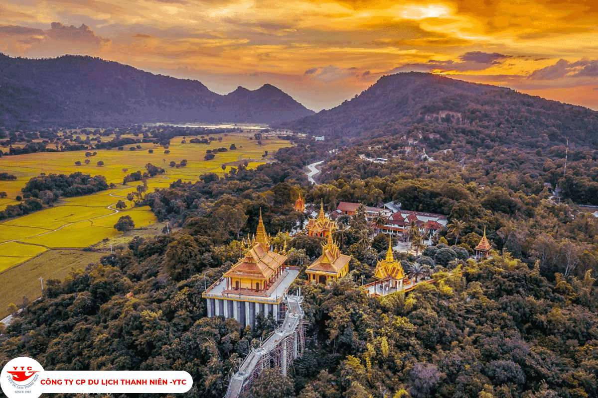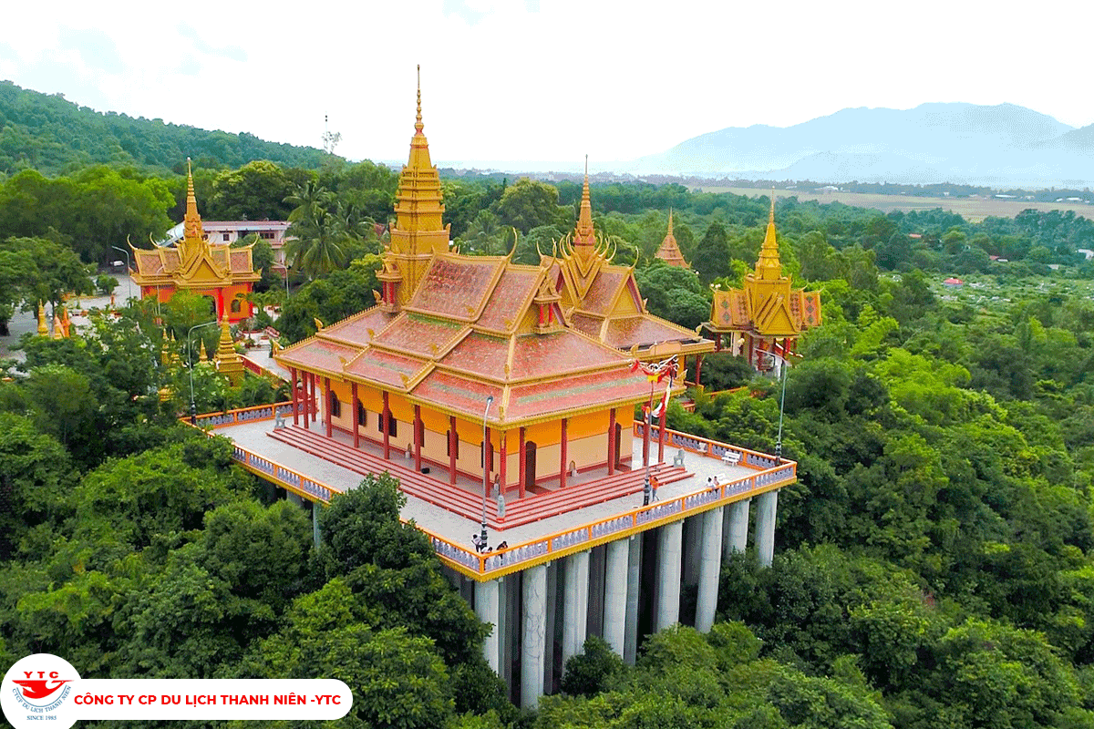 08:00 Xe đưa đoàn đi Tri Tôn, tham quan CHÙA TÀ PẠ – ngôi chùa Khmer toạ lạc trên ngọn đồi Tà Pạ, xã núi Tô ở độ cao 45m so với mặt đất. Chùa được xây trên những cột chống đỡ vững chắc cao hàng chục mét, nên khi nhìn từ xa ngôi chùa như đang lơ lửng giữa không trung, nổi bật giữa một vùng rừng núi hoang sơ. Kiến trúc ngôi chùa đậm chất Khmer Nam Bộ với màu cam đỏ đặc trưng. Những bức tranh ảnh và tượng, phù điêu được khắc họa hình tượng chim thần, rắn thần Nagar với nghệ thuật vừa thân quen gần gũi nhưng cũng độc đáo không kém. Quý khách có thể thuê những bộ trang phục và hoá thân thành cô gái Khmer và thoả sức tạo dáng chụp ảnh tại đây.